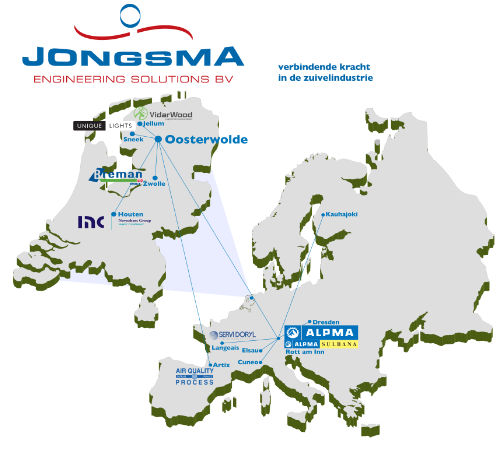 Jongsma Solutions is sinds 2010 agent van het Duitse ALPMA dat marktleider is in innovatieve kaasproductie- en membraansystemen. Met verschillende dochterbedrijven, waaronder ALPMA-Sulbana en Servi Doryl, is ALPMA in staat om totaaloplossingen te bieden voor de zuivelindustrie. Dit maakt ALPMA totaalleverancier voor kaasmakers wereldwijd.