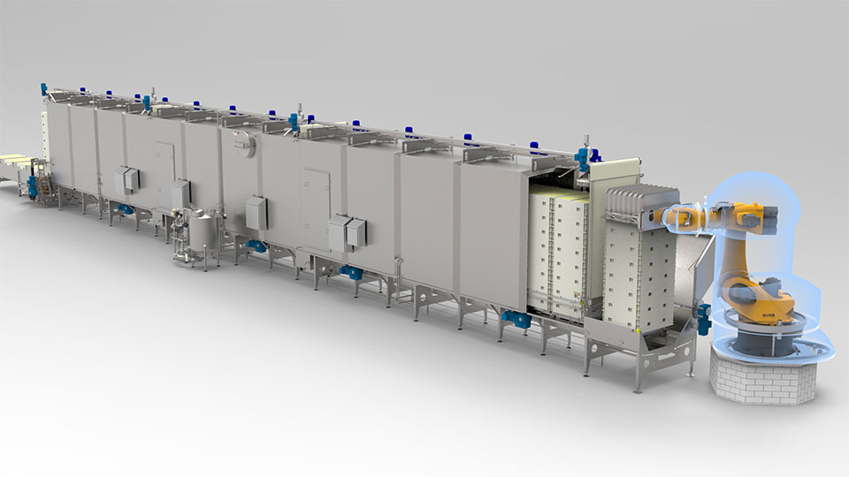 Brining systems for all cheese types. Various options possible with loading/unloading, degree of automation, tracking system, cleanability of brining racks etc.