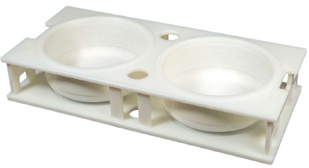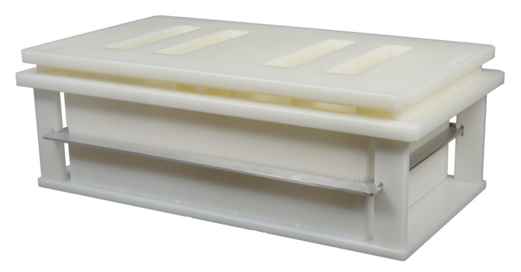 The moulds and acidification plates help to maintain the shape and pattern of your choice during acidification and brining where applicable. Our specific perforations allow the brine to penetrate, through the mould, right into the centre of the cheese.