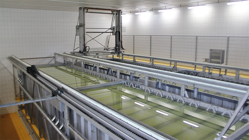 Volledig geautomatiseerde mechanisatielijn voor het stapelen van blokvormen, transport, klimatisatie, overslag en draaien van stapels en ontstapelen van productiemateriaal tijdens het draineren en verzuren.