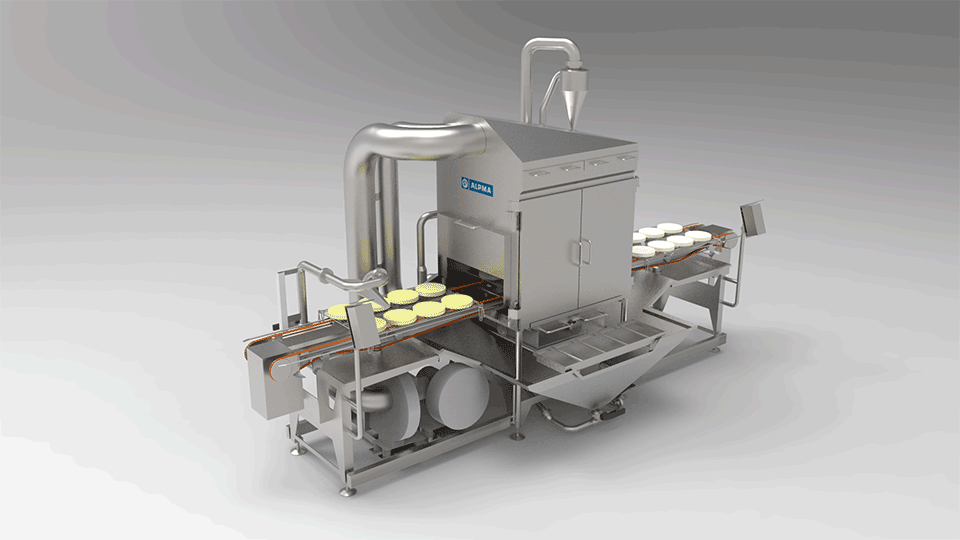 Continue reiniging van de kaasvormen (enkelfasig of meerfasig).